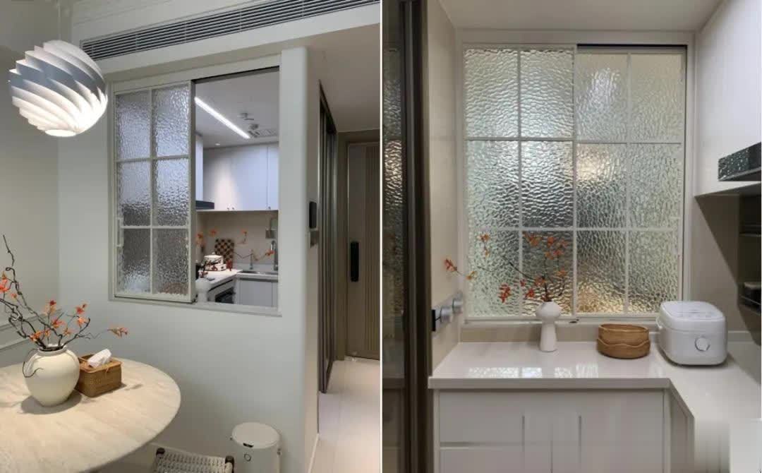 装修最正确的事情就是给小厨房开了扇内窗,开完后瞬间敞亮了,通风无敌,且还能随时关注到客厅场景,与家人互动效果杠杠滴