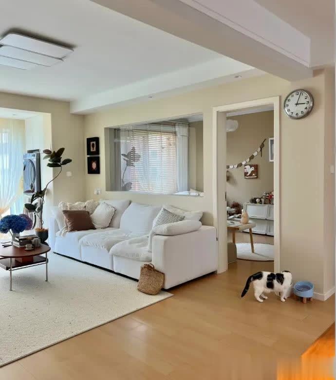 干区朝向过道新开窗洞,引光入室的同时视觉更加通透,也能提升空间的设计感《没想到开一个窗洞,不仅光线好了,家都变高级了》