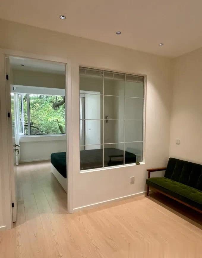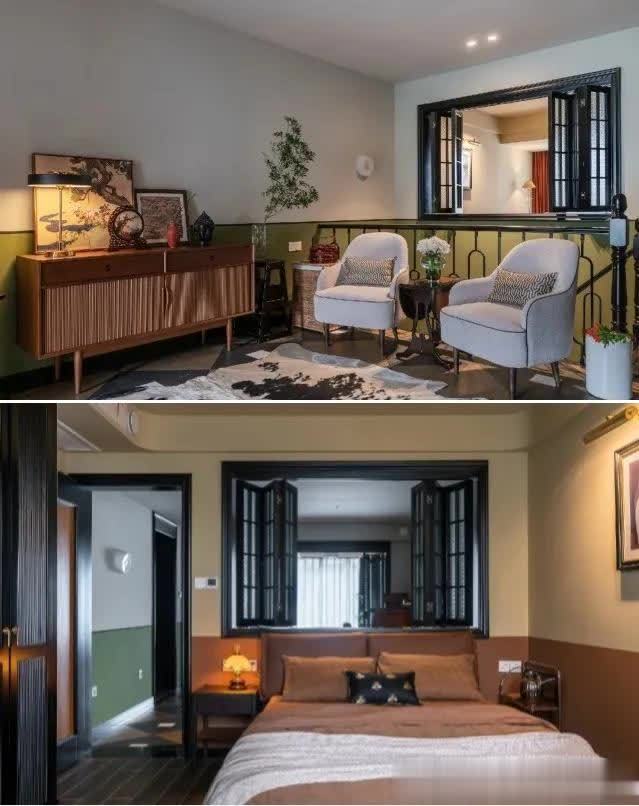 如图所示,书房兼顾次卧的墙体砸掉新开一扇窗,加上通透的玻璃,内部可以拉上帘子保证隐私,平时可以整体放大空间,提升空间的通透,装修值得花钱的做法《别再花冤枉钱!这6个格局改造才是装修的刀刃》