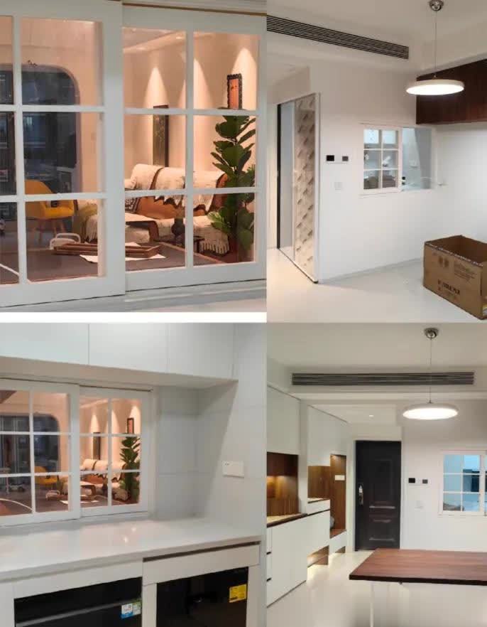 因为客厅无采光,所以在房间和客厅中间的墙面上做了这样的窗户。客厅采光情况好了很多,也更透气。推拉顺滑度还行,可以接受。